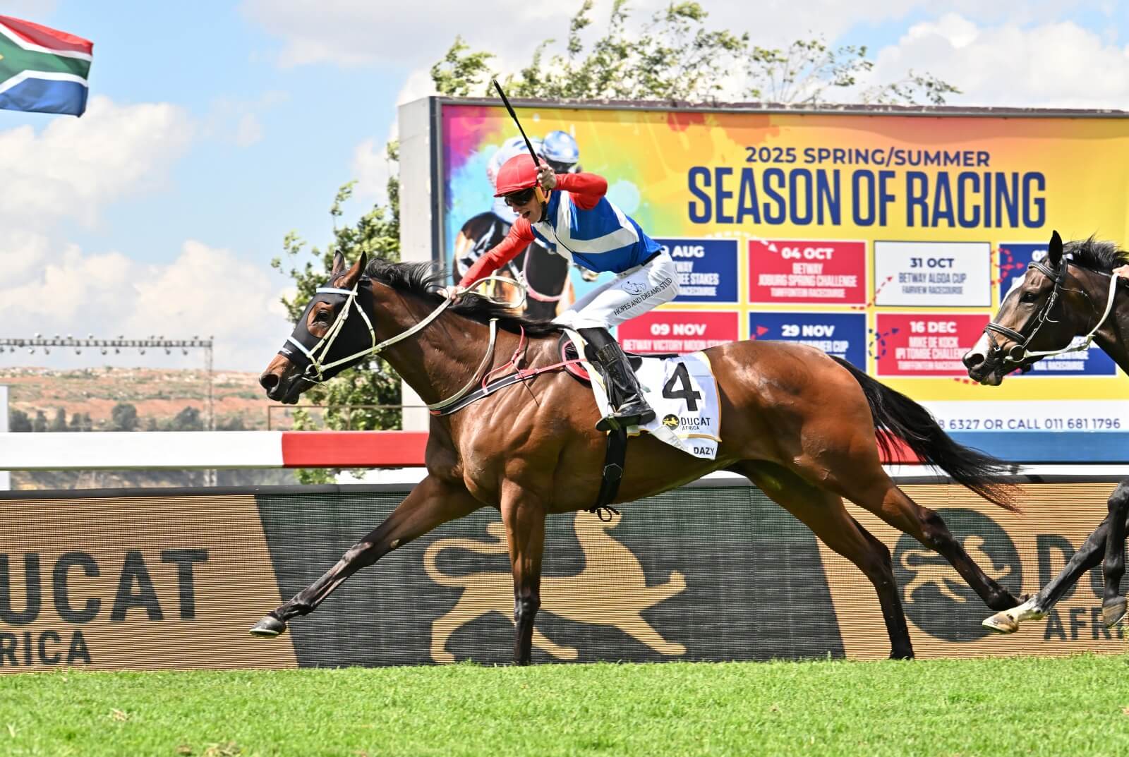 The Ducat Fillies Mile (Gr3) was won by Mr D Dasrath & Mrs C Dasrath, Messrs R P Macnab, S Poriazis, Vikash Sobaren, X Spies & D Vayapuri’s Hazy Dazy for trainer Corne Spies and jockey Trent Mayhew (who earned his white blazer in the process).